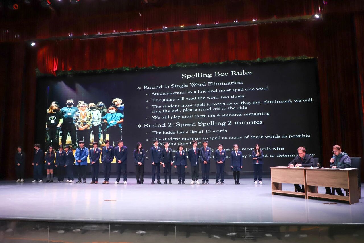文学展的序幕由英文拼词大赛(Spelling Bee)拉开!这项集趣味与知识于一体的语言活动,备受学生喜爱。赛前,每个班级都上演了内部PK战,选手们拼尽全力争夺晋级名额。最终,两名“词汇勇士”从班级中脱颖而出,代表班级站上决赛舞台,用临场反应和词汇储备一决高下!